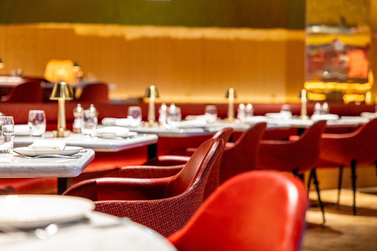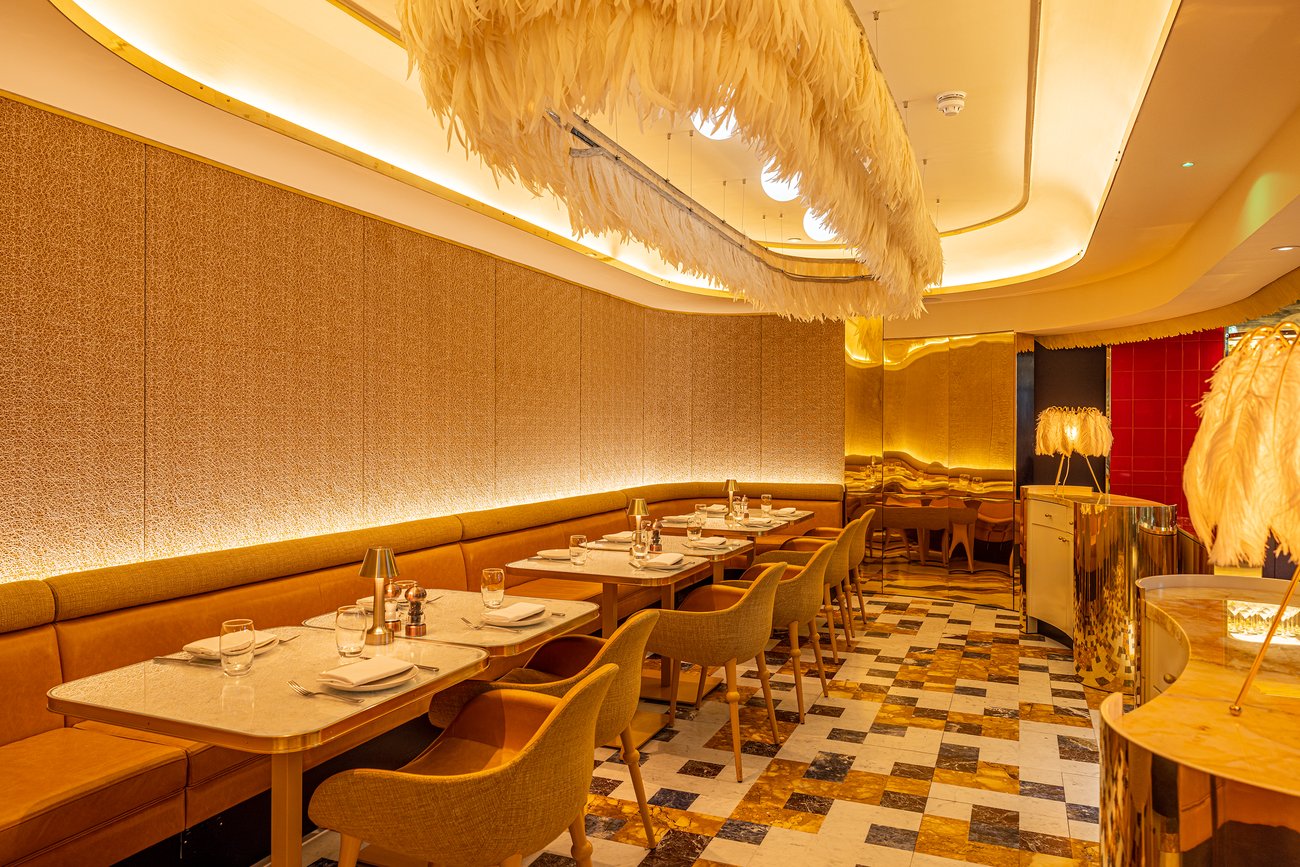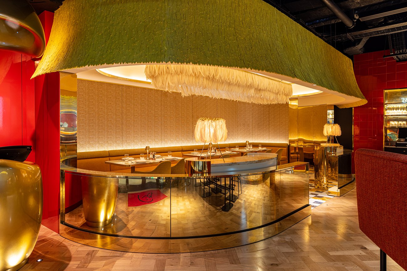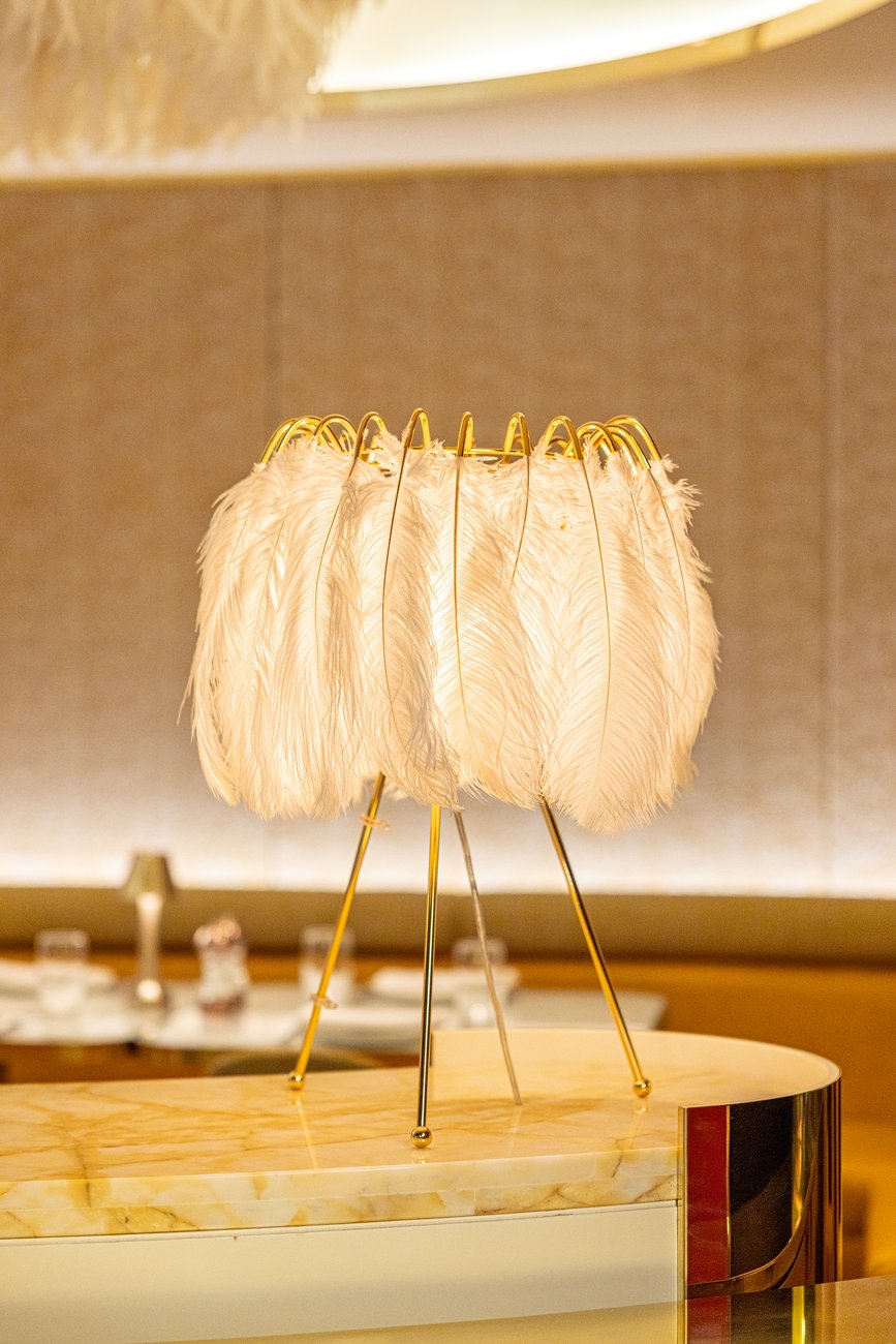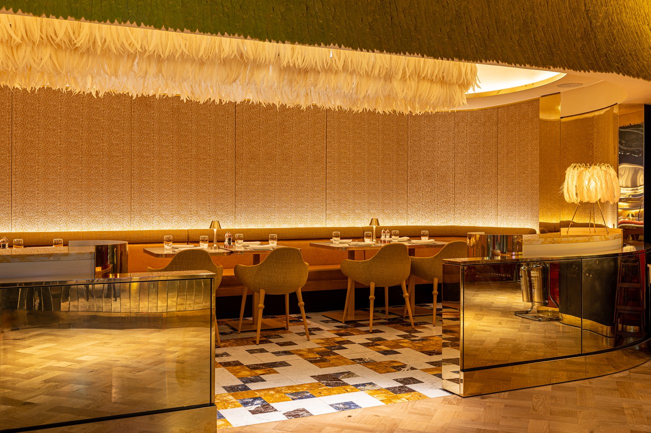 Bring your closest friends and family and settle into this gorgeously ‘feathered’ semi-private dining room offering a cosseted, epicurean experience. From its organic tangle of lace and feathered chandeliers and tabletops, to the colourful nod to the golden duck bill through the yellow upholstery and wall cladding – it’s a room designed for comfort and memory-making, accommodating 22 guests for a seated event and 30 for standing.